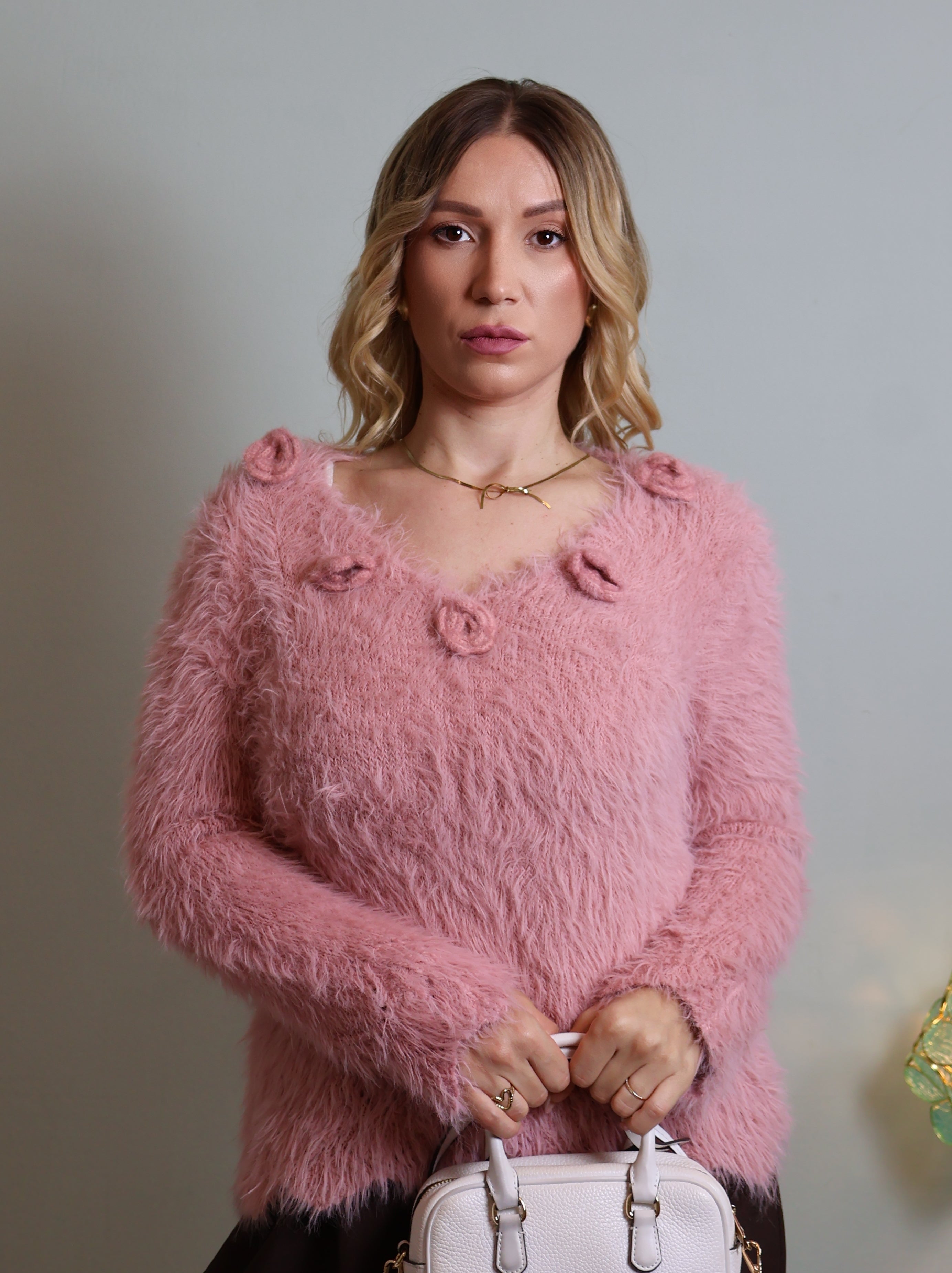 NV8925 MAGLIONE PELLOSO MANICA LUNGA DONNA
