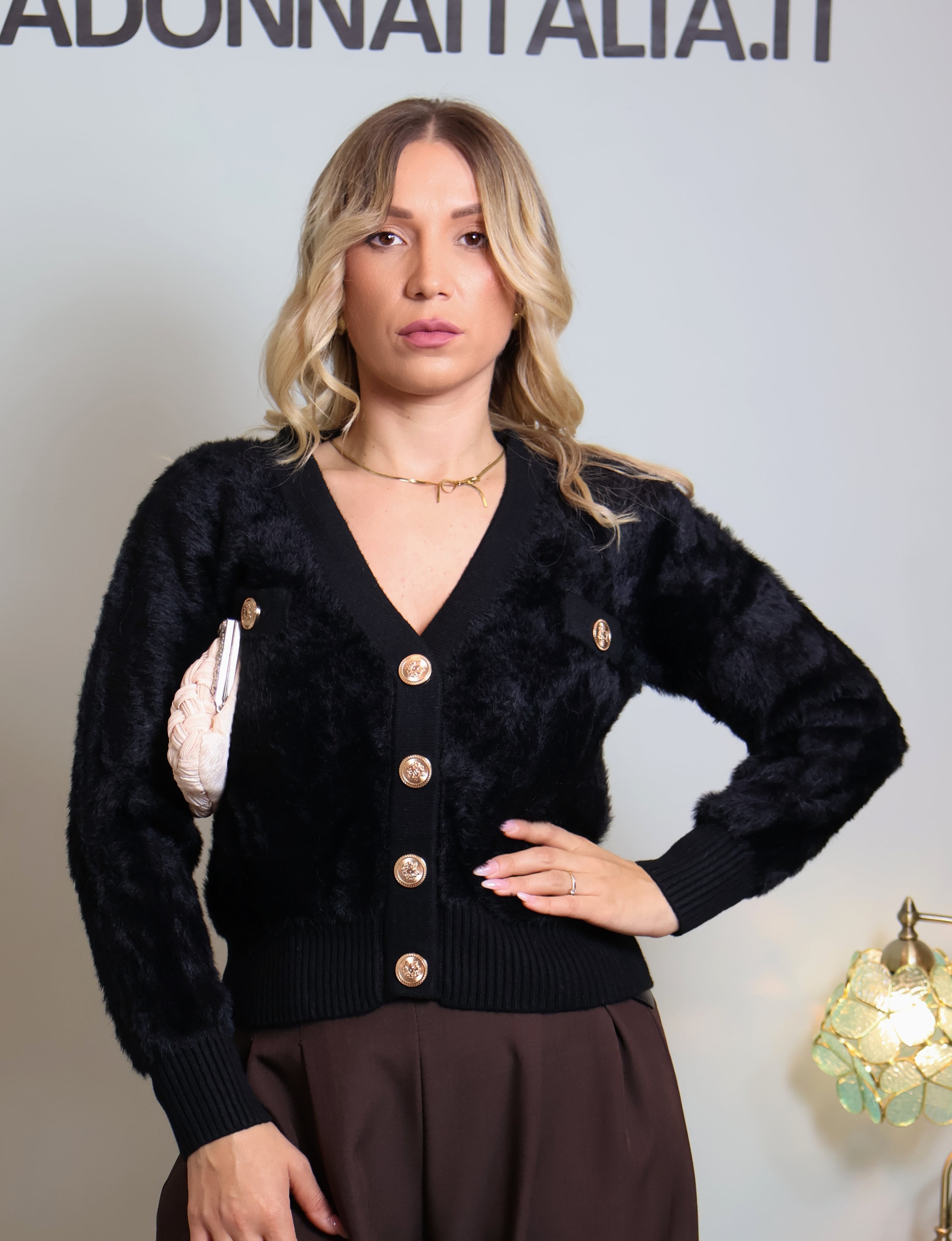 NV8875 CARDIGAN MAGLIONE PELLOSO MANICA LUNGA DONNA